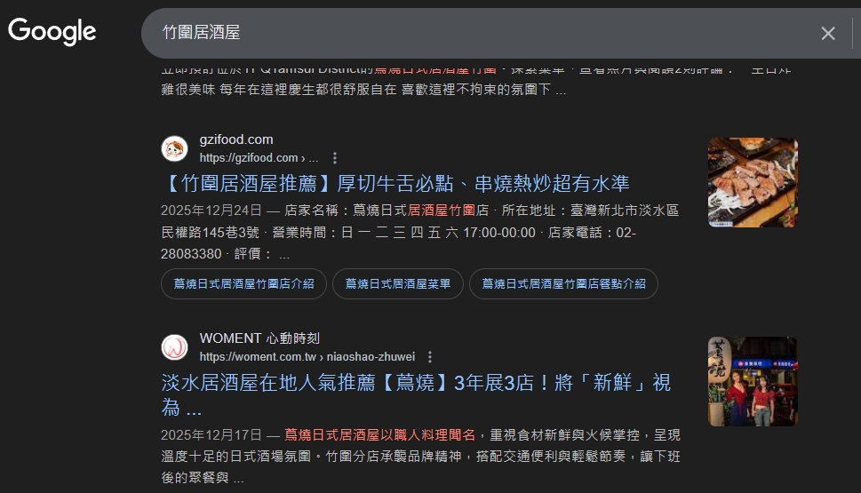 汐止/蘆洲:精準鎖定在地居民與下班小酌族群。 目前 <士林居酒屋>、<淡水居酒屋>、<竹圍居酒屋>、<汐止居酒屋>、<蘆洲居酒屋> 等關鍵字全數穩居搜尋第一頁。這份「五連勝」的成績單,正是我們作為 台北行銷公司推薦 首選的最強證明。