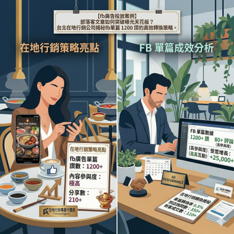 精準受眾定位 (Audience Targeting): 我們不亂槍打鳥。針對該篇美食貼文,我們精準鎖定了「對大台北在地美食有高度興趣」、「近期曾搜尋過類似餐廳」,以及「部落客粉絲的類似受眾 (Lookalike)」進行投放,確保每一個按讚都來自真正對吃有熱情的潛在消費者。
